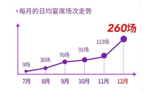 每月的日均宴席场次从9场增长至260场,增长29倍!