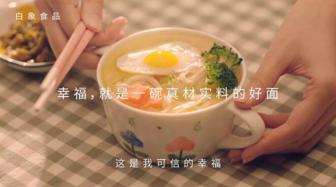 在视频大片里,白象食品的产品露出相当“讨巧”。它的出现,推动了故事的发展、承载了幸福的情感,是整个品牌营销过程中不可或缺的一环。