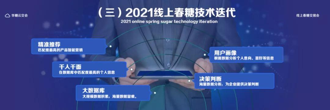 为了高效链接、深度体验,“2021线上春糖交易会”进行技术迭代:千人千面、大数据库、用户画像、决策判断等,为企业提供技术服务,发布清晰明确的采购需求,一键触达。