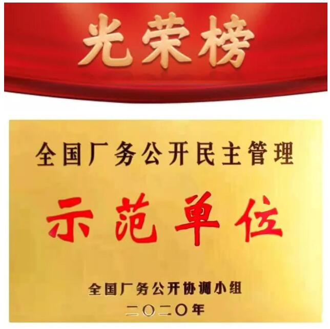 2020年12月,古井集团获“全国厂务公开民主管理示范单位”殊荣。