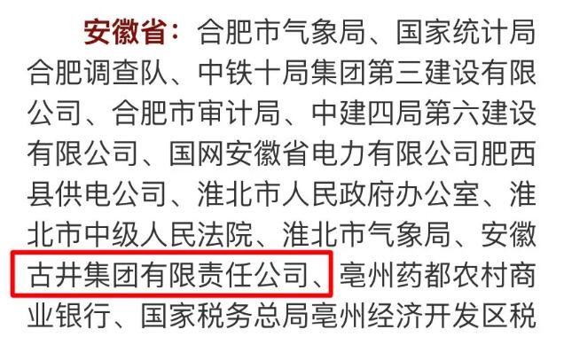 2020年11月,古井集团被中央文明委授予“全国文明单位”荣誉称号。