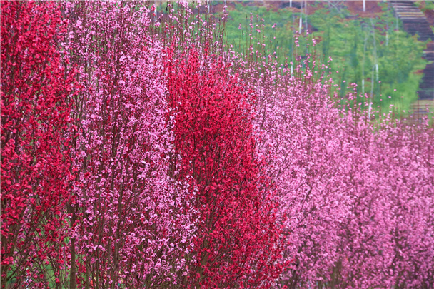 走进三峡龙泉湖,仿若走进梦里的桃源。环湖大道,一株株龙柱碧桃傲然挺立,在春风里恣意绽放;远处的山坡上,桃树密密匝匝分布着,仿佛散落人间的精灵,梦幻粉、艳丽红、纯洁白,层峦叠嶂,桃林尽染,如水彩画般绚丽多姿。