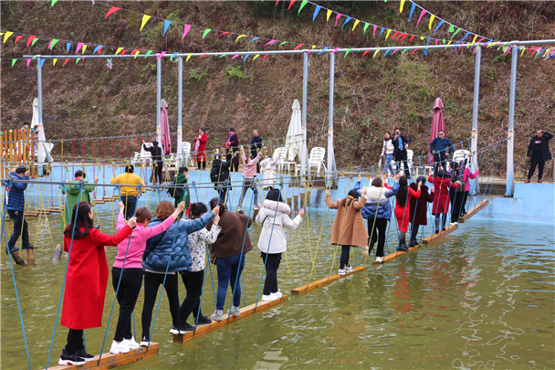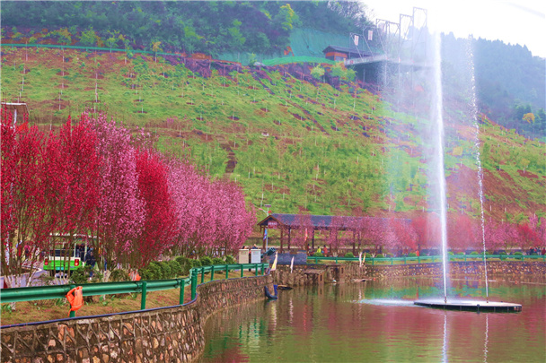 据介绍,桃花节期间,龙泉湖陆续推出了“桃林寻宝”奇趣游、“人面桃花”抖音、朋友圈PK赛、“晃晃桥”争霸赛、“唱红歌”等活动。景区内还有玻璃吊桥、彩虹滑道、玻璃水滑等各类游玩项目,后续将推出水上威亚等项目,更多精彩等待游客来解锁。
