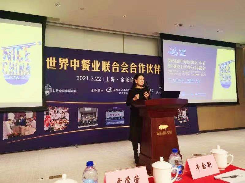2021年3月22日,2021年世界中餐业联合会合作伙伴工作会暨第5届世界厨师艺术节、2021新餐饮博览会新闻发布会在上海举行。