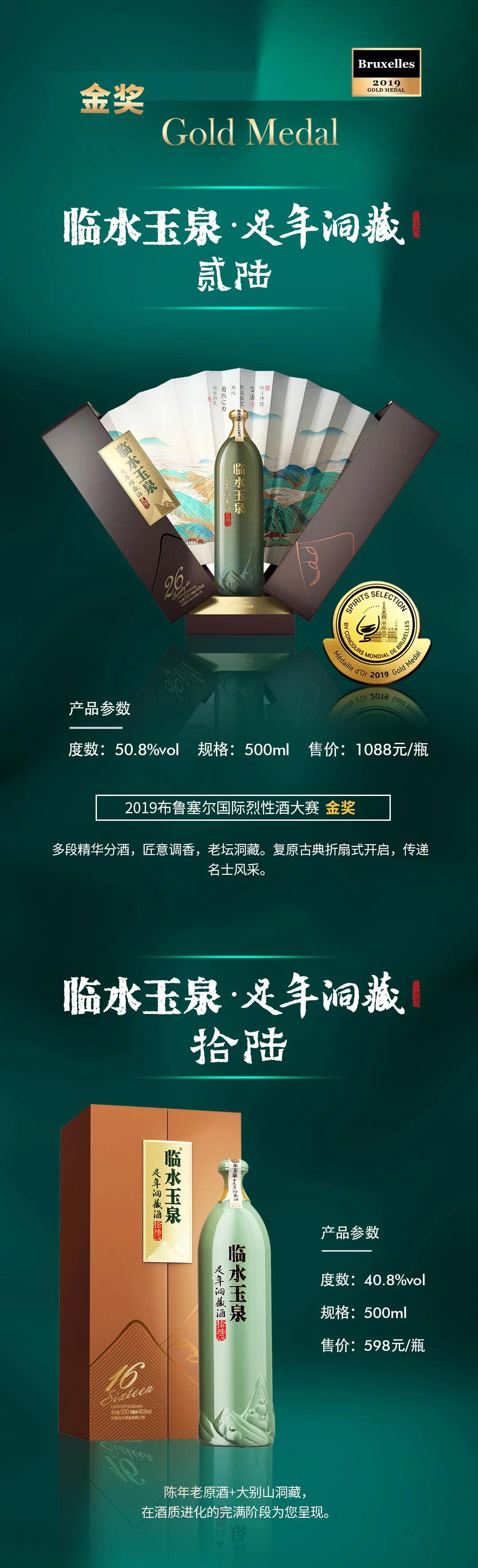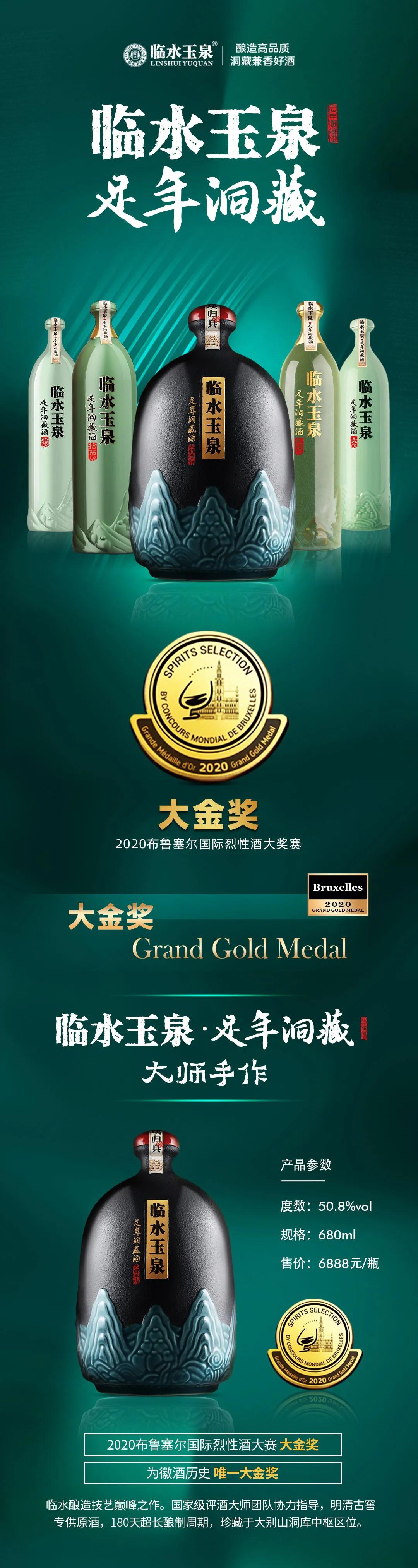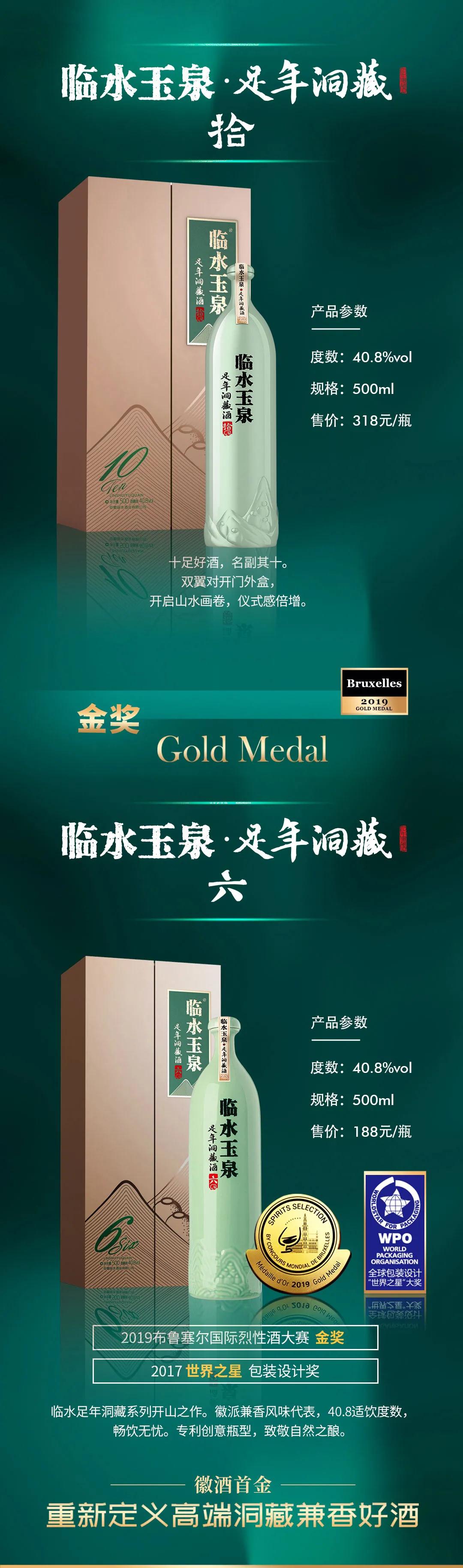 临水玉泉足年洞藏这秀丽的瓶型,是在传统玉壶春瓶与现代波尔多瓶相结合下的产物,那温润如玉的绿色像不像一位翩翩公子?正所谓:谦谦君子,玉树临风;酒中君子,临水玉泉。咱们可不止是只有颜值,临水玉泉足年洞藏系列还是个家族产品,近年来前后斩获了比利时布鲁塞尔国际烈性酒大奖赛1枚大金牌奖(徽酒首金),2枚金奖。13年无断代做大别山洞藏兼香美酒的临水玉泉,早已闪耀在行业巨高的领奖台上!