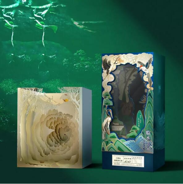 为了让用户有浸入式的消费体验,外盒结构采用了立体书的概念,这种多层次的造型,完整的展现了大别山山峦起伏,别有洞天之美,让用户有身临其境,置身其中的感受,在视觉上更加别具一格。