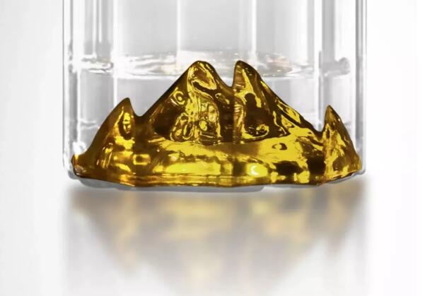 透过瓶身映衬着底部凸起的金色大别山峰造型。临水玉泉大别山藏酒洞曾获得过基尼斯世界纪录,希望大家在享受这份时间佳酿的同时,也能领略大别山别样的风情。