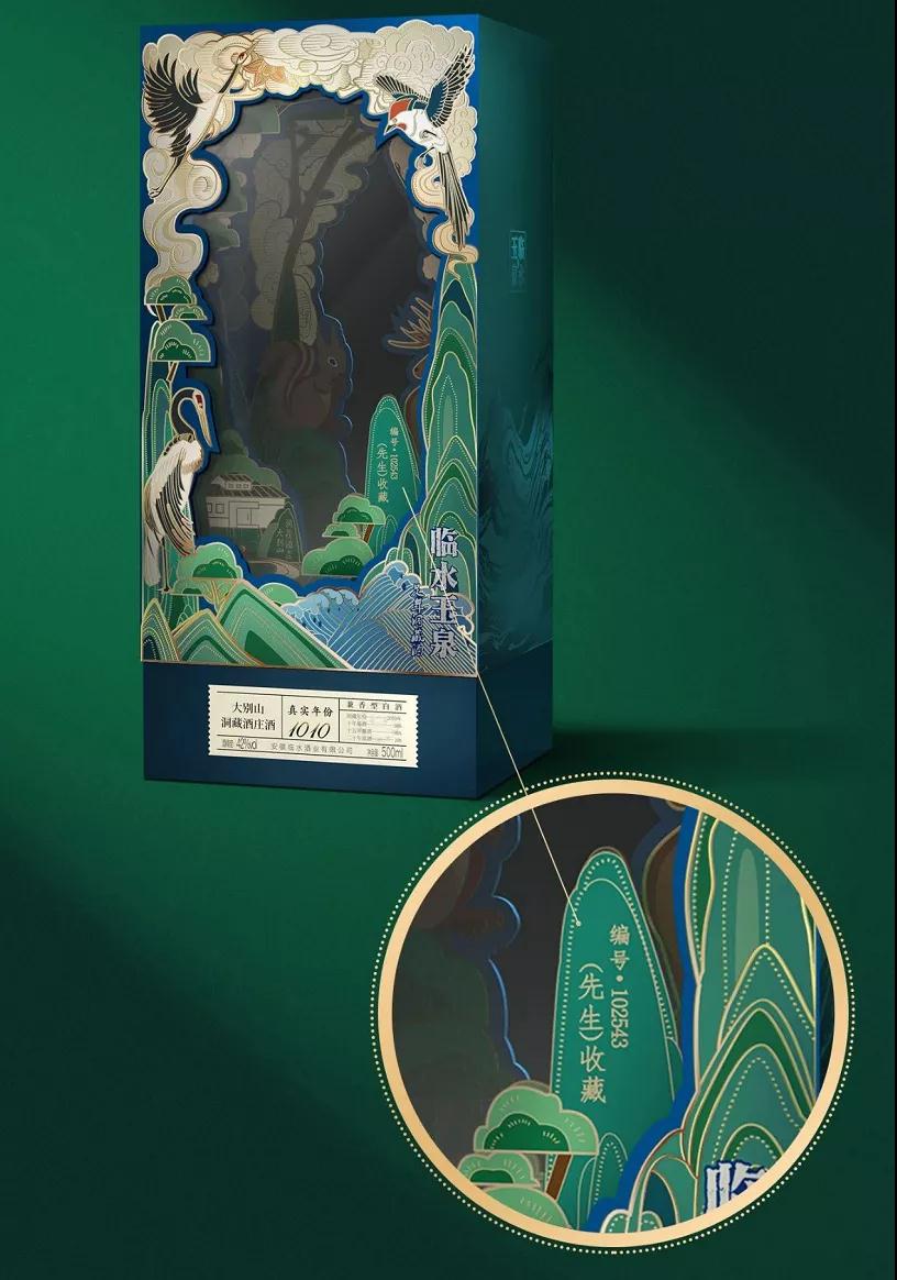 酒瓶的设计基于经典的临水玉泉足年洞藏做了传承与创新。