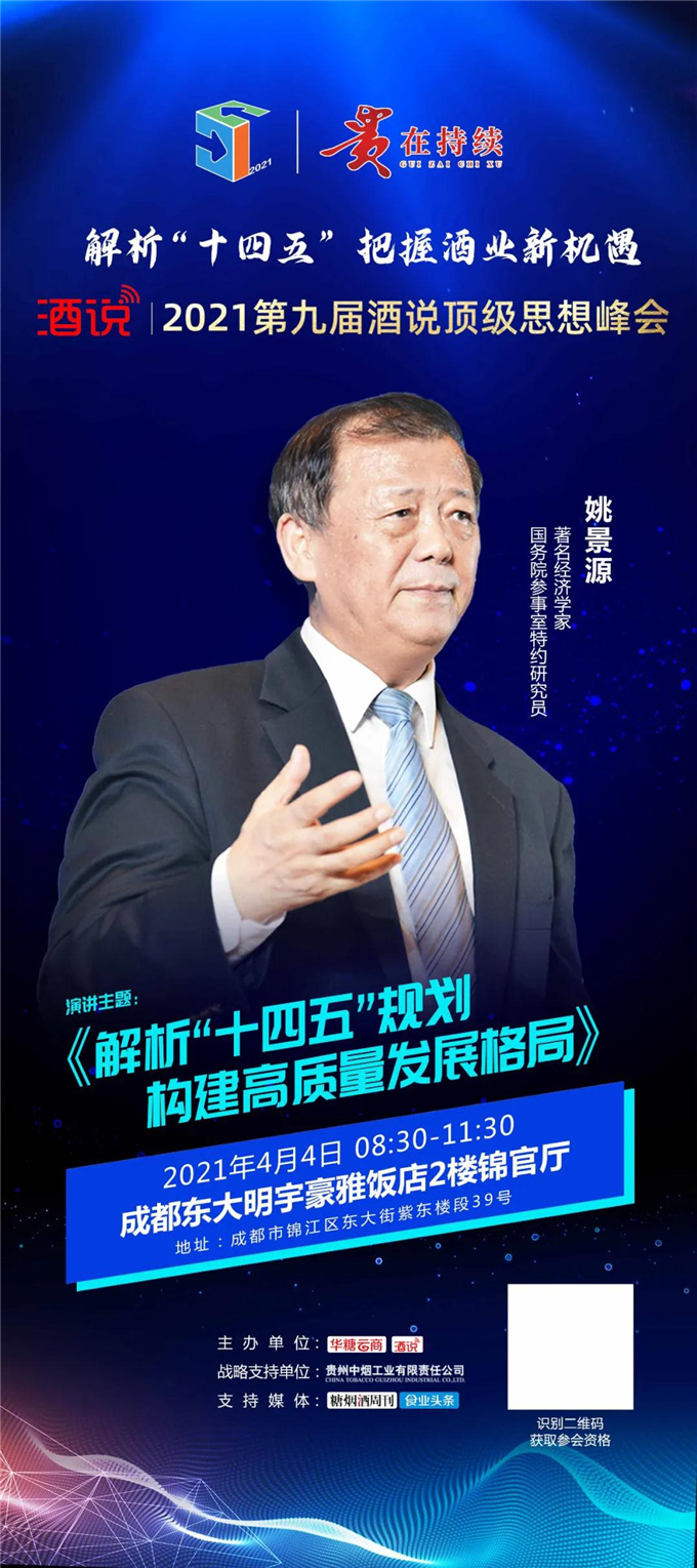 根据小编从组委会了解到的信息,本届酒说思想峰会特邀经济学家、国务院参事室特约研究员姚景源来重磅解读“十四五”规划,从宏观层面来解析高质量发展格局。
