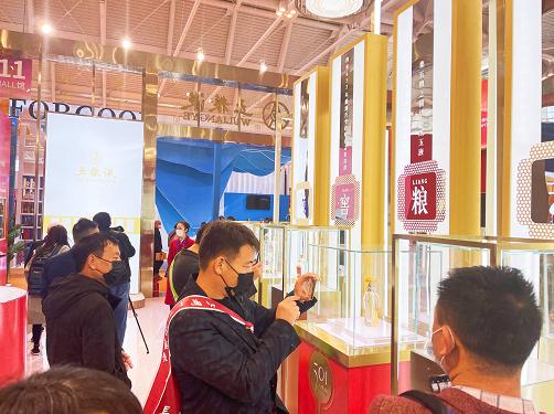 在五粮液的展厅内,501五粮液、经典五粮液、第八代五粮液、国际时尚·五粮液等核心产品,五粮液·九龙坛等高端文化收藏类产品,以及五粮液系列酒、吾调果酒等各个不同定位、不同特色的酒品有着精美的陈列展示,吸引了众多参会嘉宾驻足观看。