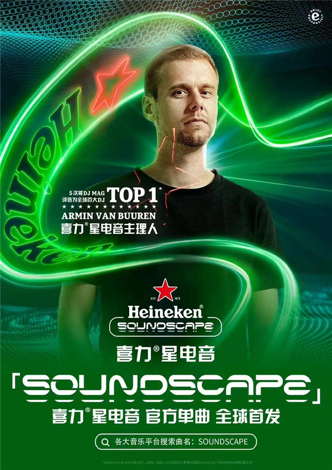 另一方面,喜力®星电音主理人由全球百大电子音乐艺人 ——Armin van Buuren担任,并亲自打造同名电音单曲——《Soundscape》,在光与影、声与电中,带领观众超脱现实,进入电音元宇宙,同时为有天赋的歌手、音乐家和电子音乐艺人提供了展示和交流平台,给中国电音产业的发展注入了强势电流。