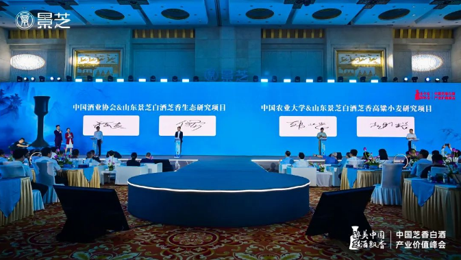 作为芝麻香白酒创领企业,景芝白酒一直以来以“扛旗者”身份积极探索芝香发展、鲁酒振兴,乃至整个行业高质量增长的新路径。峰会上,景芝白酒分别与中国酒业协会、中国农业大学进行了“山东景芝白酒芝香生态研究项目”和“芝香高粱小麦研究项目”两大项目签约。牵手行业协会、科研院校,产研结合生态酿造,从源头加强品质控制,从源头保障景芝酒品质,夯实产区白酒产业链,并以此引领芝香白酒的高质量发展,进一步满足消费者的高品质需求。