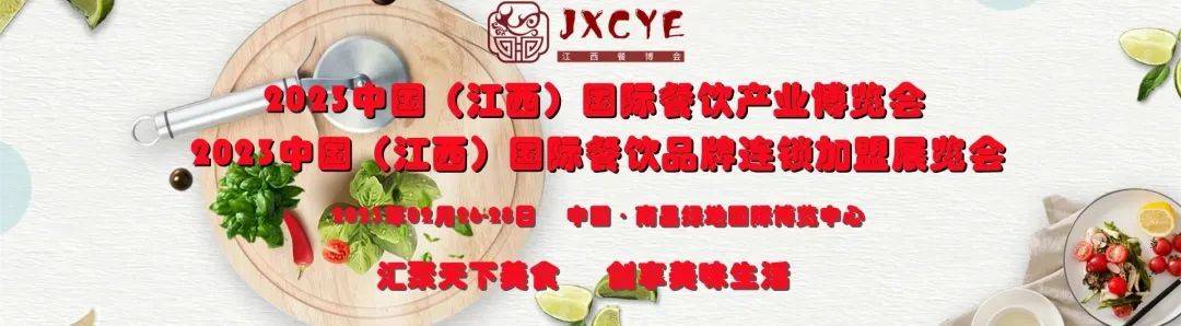 JXCYE江西餐博会:2023中国(江西)国际餐饮产业博览会/2023中国(江西)国际餐饮连锁加盟展览会(简称:JXCYE江西餐博会),即将于2023年02月26-28日,在南昌绿地国际博览中心盛大举办。本届大会规划展览面积3.9万平方米,预设展位1500余,可容纳900家企业参展,同期展示超过两万款餐饮产品和服务。