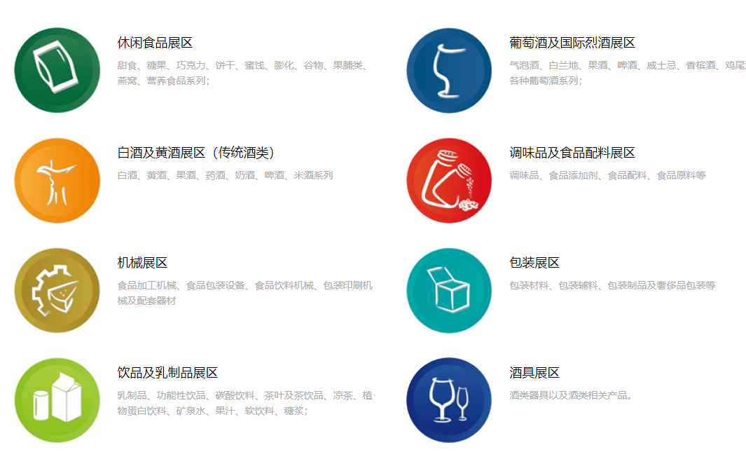 凡从事各种酒类、食品、饮料、调味品、食品添加剂、食品包装、食品机械的生产或销售单位均可报名参展。严禁与上述参展范围不符的单位及产品入场参展。