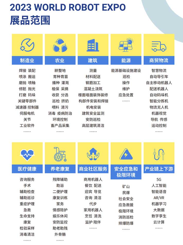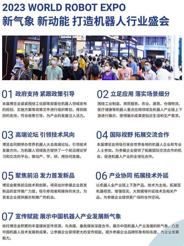 2023世界机器人博览会即将举办,展区由工业机器人、服务机器人、医疗机器人、特种机器人、智能物流机器人等部分组成。大会邀请了全球机器人领域著名企业、高校、科研机构,集中展示世界机器人领域的最新科研成果、应用产品与解决方案,为中国机器人产业提供国际性产业交流平台。本届展览面积将达到52000平方米。