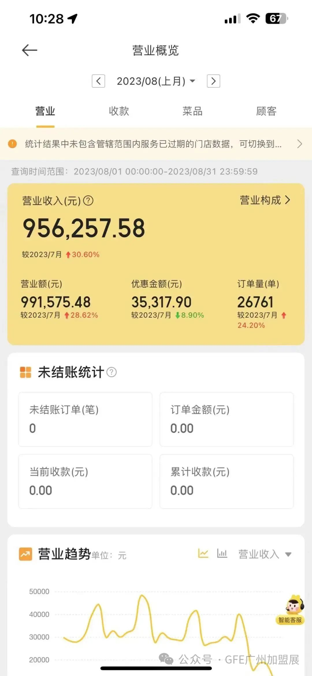阿婆牛杂的第一家门店北京路西湖路店2023年8月单月营业额突破90万+,2023年5月1日单天营业额更是突破6万元。