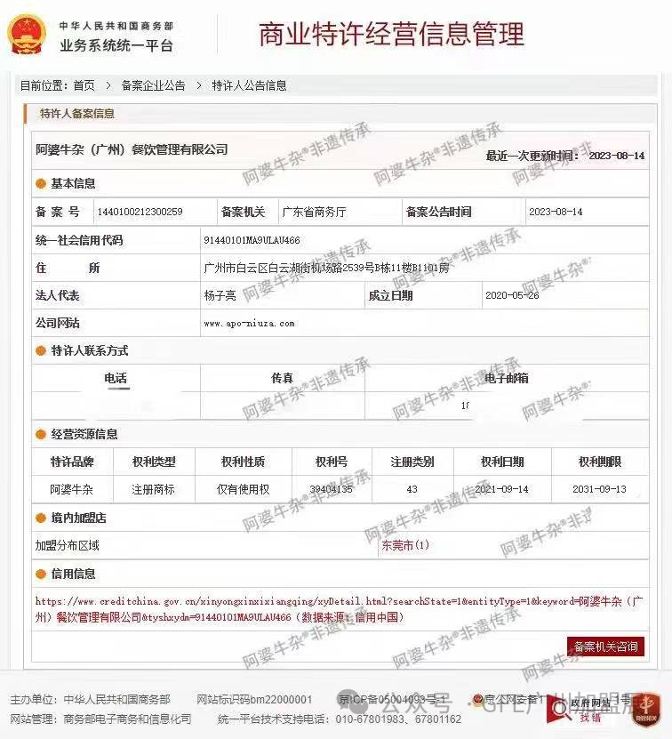 2023年,阿婆牛杂荣获广州地道美食品牌称号,进一步坚定了消费者对其口碑的高度认可。同年荣获商业特许信息经营管理证书,更加充分表明社会对我们的认可。
