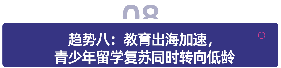 反向观察国际留学市场,在复苏的同时,正进一步走向低龄化。介于全球疫情缓解及出入境政策放宽,国际留学市场迎来新一轮复苏,与此同时,低领留学人群回潮。据美国教育协会数据显示,在美就读 K12 教育的中国学生人数增长迅速,过去 10 年,赴美就读高中的中国学生人数增长高达 98.6 倍,远超研究生、本科阶段的 14 倍,留学人群正不断向下渗透。