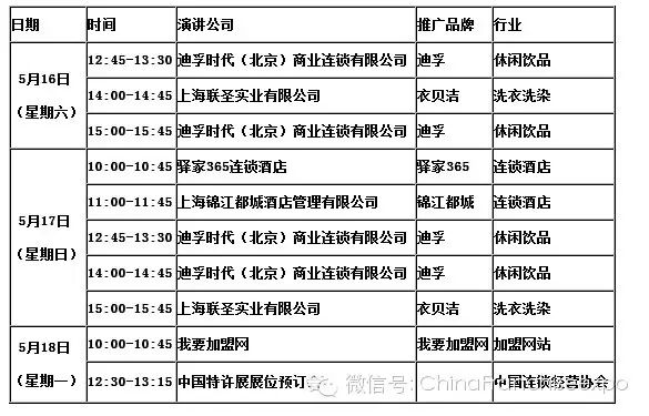 活动内容:为让广大投资人对连锁加盟项目有一个更加全面,更加直观的了解,2015中国特许展将在展览期间为特许企业和投资人之间搭建一个对接的平台。本次项目推介会上将会有数家企业对其加盟项目进行现场宣讲,解决投资人提出的各种问题。欢迎有兴趣的投资人于展会期间前往项目推介会现场了解详情。