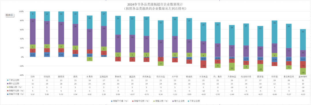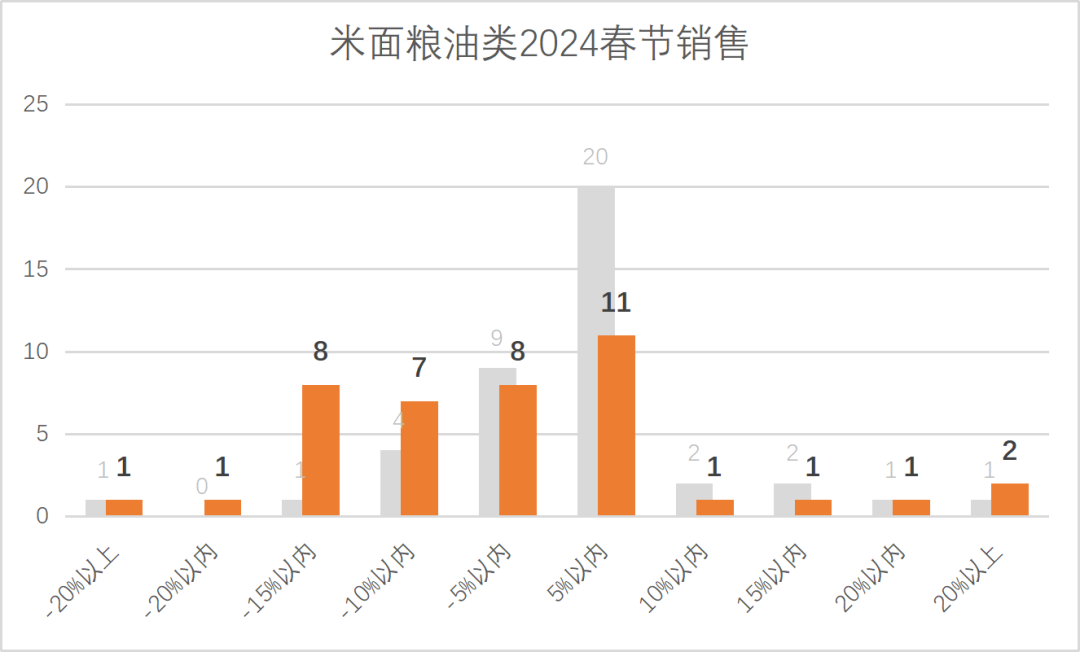 近日,中国连锁经营协会采购专业委员会开展了2024年春节期间销售数据的调查工作。此次调查涉及全国41家商超企业,调查收取的销售数据