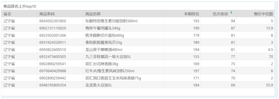 | 排名 | 名次变动 | 商品条码 | 商品名称 |