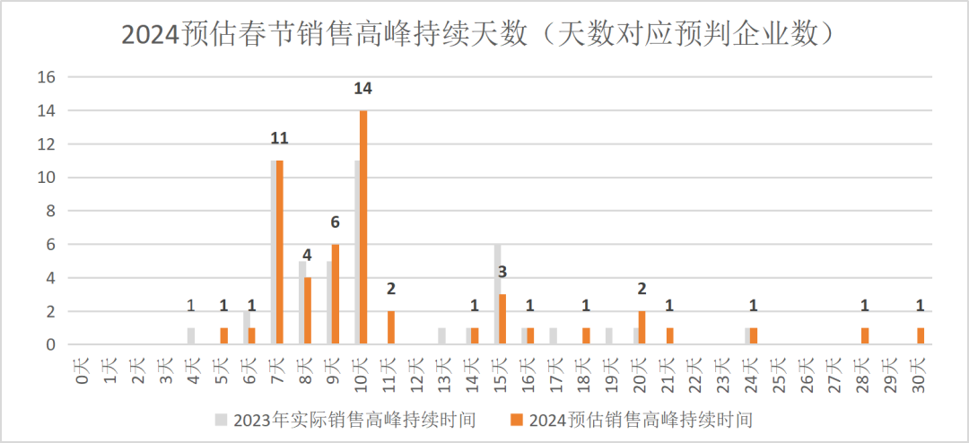 2024年春节假期(从大年初一开始)共持续8天,预计销售高峰将更加集中。