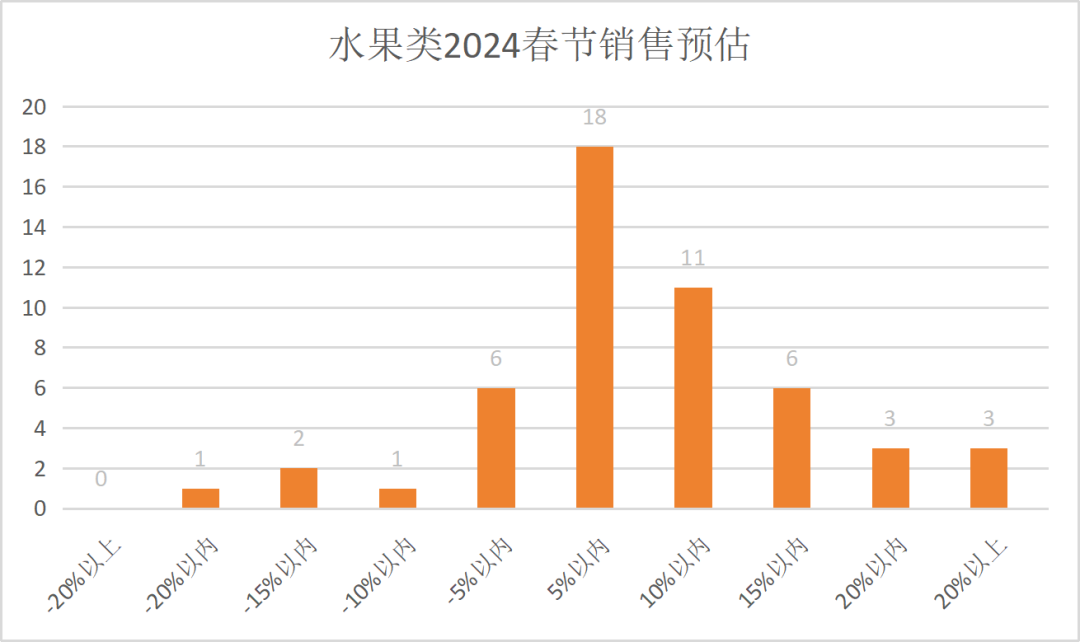 新春佳节即将来临,中国连锁经营协会采购专业委员会开展了2024年春期间各商品品类的销售预测调查。51家商超企业参与了调查,通过对比,可以为商超行业、企业提供参考,调查结果如下: