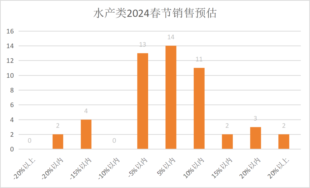 水产是年夜备餐、聚会等场景中不可或缺的商品,大部分企业预判销售增长。也有企业认为受核废水排放影响,海产品预估较往年热度下降。部分日本进口水产品受供应链影响,销售将持续下降。