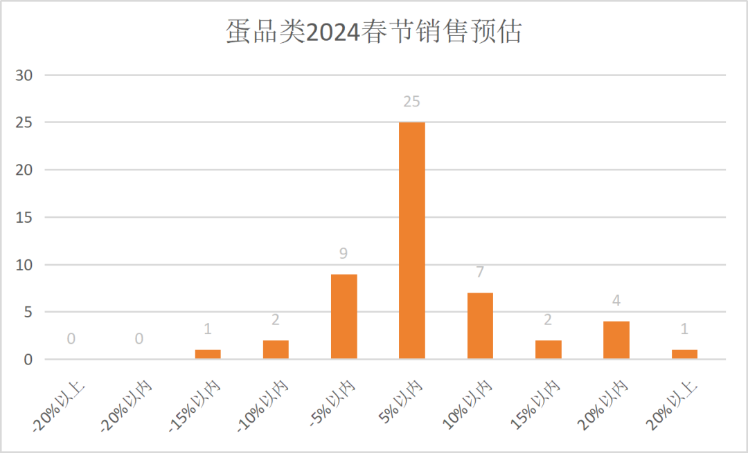 蛋品类商品是春节年货备餐主要食材,用量较平时明显增长,预判销售稳定增长。