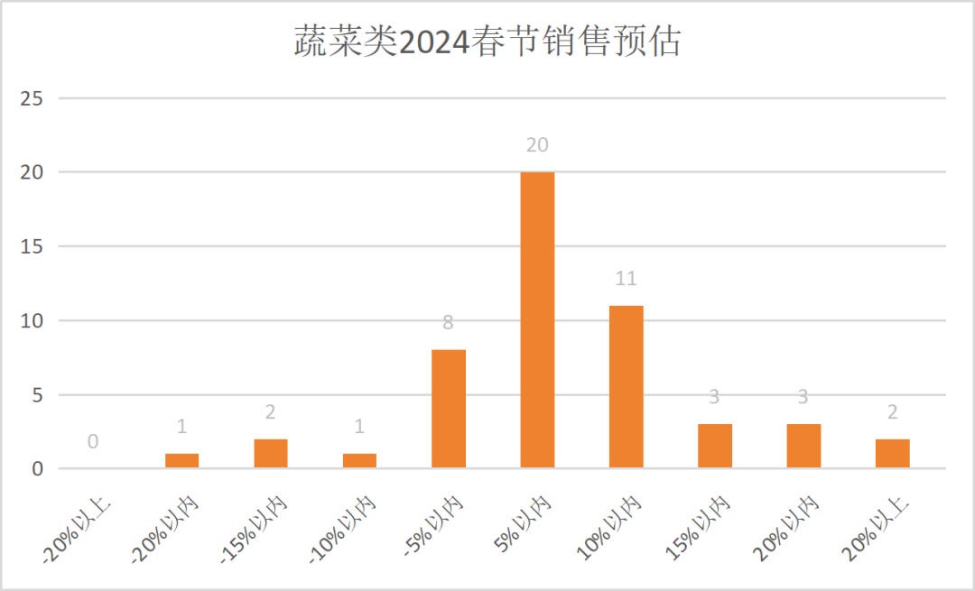 春节期间,跨区域物流能力下降,物流成本上涨,蔬菜类商品将有不同程度的涨价,对销售略有影响。