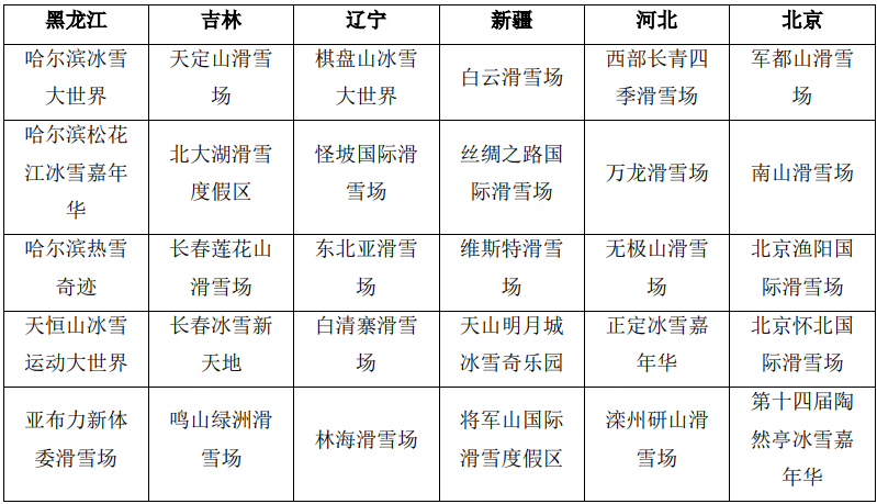 2023年下半年雪季,东北、京津冀、西北等区域的六个省份,最热门的旅游项目如表1所示。值得关注的是,黑龙江的冰雪大世界、冰雪嘉年华等具有较强休闲属性的项目纷纷上榜,这体现出大众娱乐需求在当地的潜力和动力,其它地区的热门冰雪旅游项目更集中在滑雪场,也彰显出以滑雪为代表的冰雪运动的发展势能。表1 2023年部分冰雪旅游目的地省份最热门冰雪旅游项目TOP5