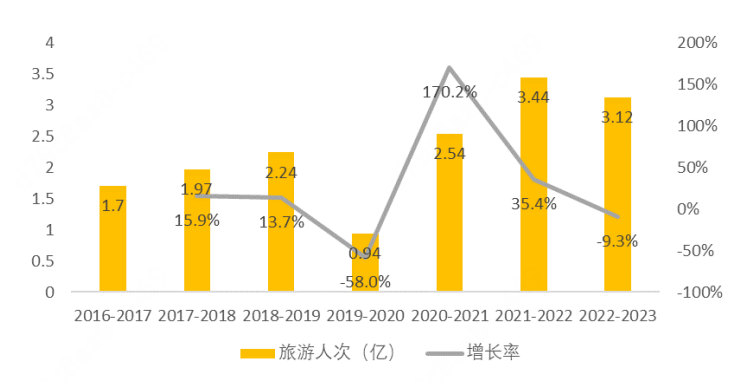 进入“后冬奥”时代的2023年,我国冰雪旅游消费延续了之前的高增长态势。根据中国旅游研究院数据,2022-2023冰雪季我国冰雪休闲旅游人次达到3.12亿,冰雪休闲旅游收入为3490亿元,连续两个冰雪季实现了超过3亿人次的市场规模,预计2023-2024冰雪季我国冰雪休闲旅游人数将超过4亿人次,冰雪休闲旅游收入有望达到5500亿元(见图2)。![]()