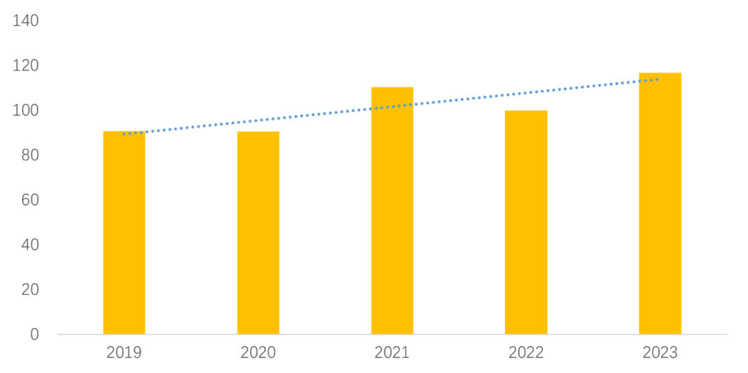 在消费侧,一是县域居民的保养、护肤意识提升,愿意为“颜值”消费支付较高的体验费用。美团数据显示,2019-2023年美业消费客单价除在疫情相对严重的年份出现小幅下降外,五年内整体呈现增长趋势,2023年前三季度县域美业消费客单价为117元(见图7);清华大学县域消费市场调查报告显示,美容项目是县域女性消费者消费支出最高的品类[10]。二是县域消费者对以办卡充值为主的“重资产”消费方式更加慎重,开始倾向于金额相对较小的三次卡或多项目单次套卡。三是美业行业连锁化率低,多以散店、小店为主,县域消费者更加愿意通过互联网平台进行透明化、标准化、有保障的消费。美团数据显示,2023年前三季度平台美业订单量同比2022年同期增加77.2%、平台有交易消费者同比增加71.1%,县域各指标增长速度均高于全国同期水平。