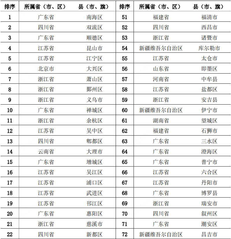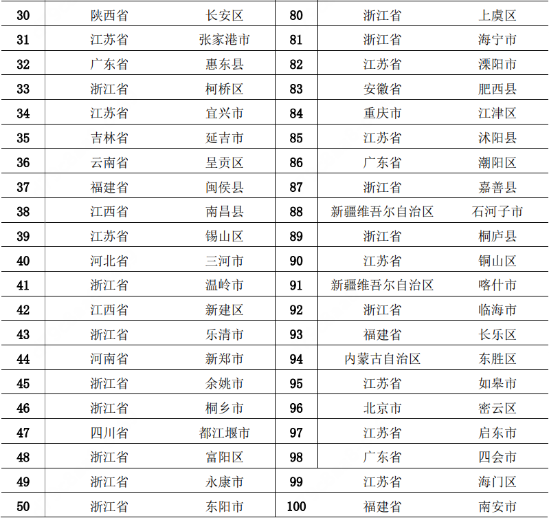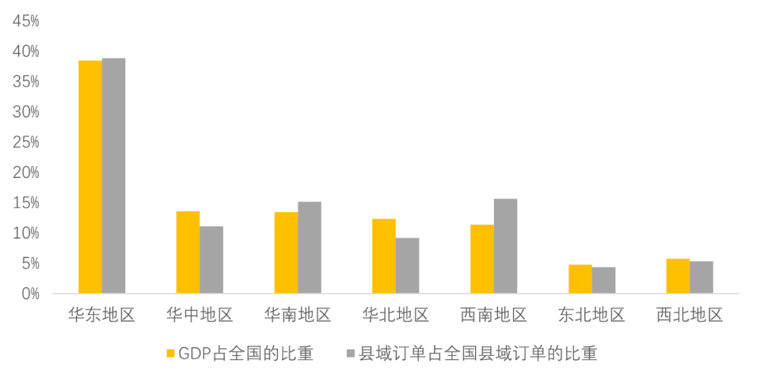 数据来源:中国县域高质量发展报告2023、2023中国县域经济百强报告,美团研究院整理县域生活服务消费水平与当地经济发展水平和居民生活习惯密切相关。从区域维度看,我国华东、西南、华南、华中地区的县域生活服务消费相对活跃。美团数据显示,2023年前三季度,华东地区县域生活服务消费订单量居全国首位,占全国县域地区订单量的比重为38.9%,西南地区、华南地区、华中地区、华北地区消费订单居于中位,占比分别为15.5%、15.2%、11.2%、9.3%,西北地区、东北地区相对靠后,占比分别为5.4%和4.4%(见图8)。从线上生活服务消费百强县域来看,美团数据显示2023年线上生活服务业消费百强县域[11]中,江苏省、浙江省、广东省三省表现突出,分别占22席、22席和15席;从区域层面看,华东地区占47席、华南地区占21席、西南地区占12席(表3)。一方面,县域生活服务消费与地区的经济发展水平相关,如华东和华中地区为例,以较高的GDP催生了较多的生活服务消费,另一方面县域生活服务消费也与地区生活习惯相关,如西南地区省份的生活节奏相对偏慢,夜生活丰富,以相对较低的GDP占比贡献了相对较高的订单量。