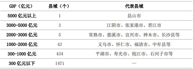 我国县域经济发展高度分化,地区生产总值在1000亿元以上的县域与地区生产总值10亿元以下的县域并存。壹城智库研究显示,2022年我国地区生产总值在1000亿元以上的县域约52个,与此同时,全国范围内仍有约1471个县域的经济规模低于300亿元,还存在70个左右经济规模低于10亿的县域(见表2)。