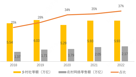 图2 2018-2022年农村网络零售额占农村消费品零售额比例