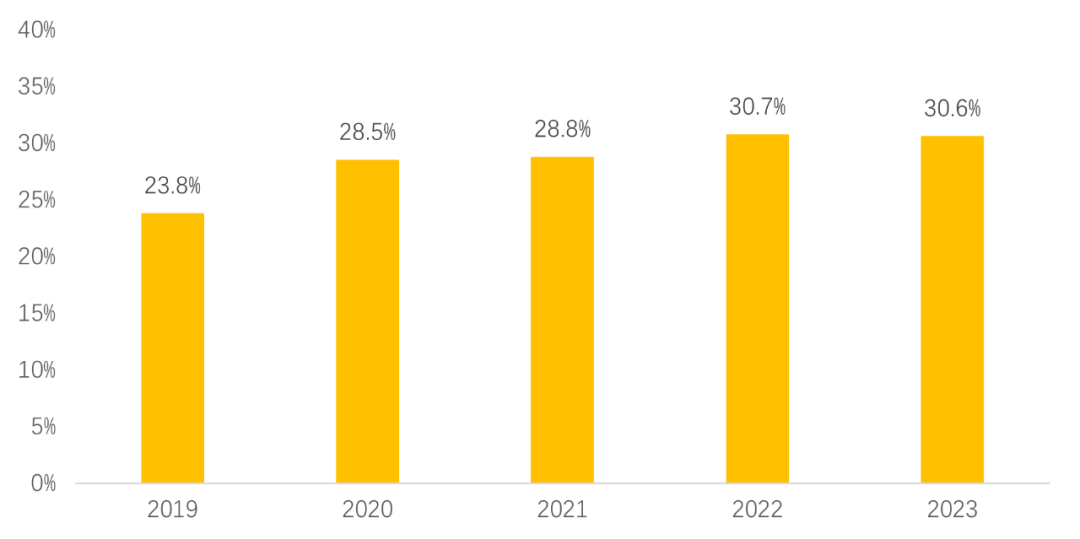 图3 2019-2023年(Q1-Q3)美团县域生活服务订单量占比