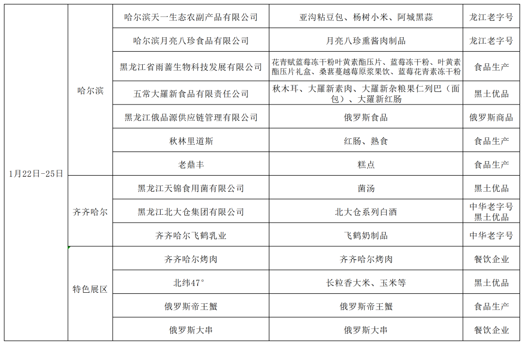 省商务厅相关负责人介绍,1月22日至25日是哈尔滨、齐齐哈尔美食专场。