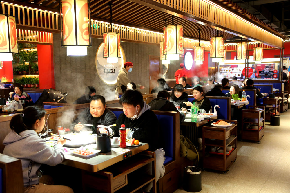 2023年11月26日,市民在江苏省连云港市连云区一家火锅店用餐。新华社发(王春 摄)
