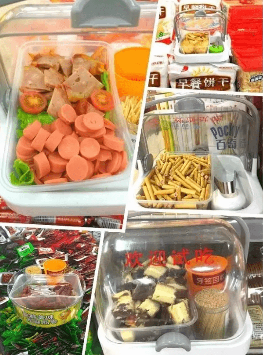 2、散杂课试吃品要求将试吃盒封好膜后在上方划开口,方便顾客将牙签插入其中取出商品进行试吃;