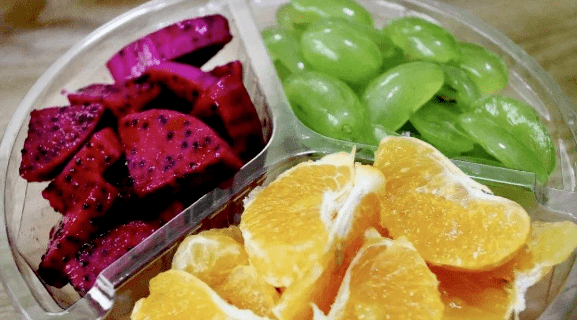 做好选品后,将水果切成试吃的小块,先自己拿一块来试一下味道过关才行,不宜过大也不要太小,规格尺寸刚刚好,顾客吃一下就能感受到果品的口感和品质就行。