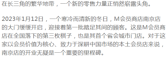 在零售版图中,M会员商店如新星升起,1月12日,当costco华南店与山姆正面对决时,M会员商店也悄然进入南京,与山姆展开同城较量。这不仅是一场地域之战,更是对会员制零售未来趋势的深度探索。