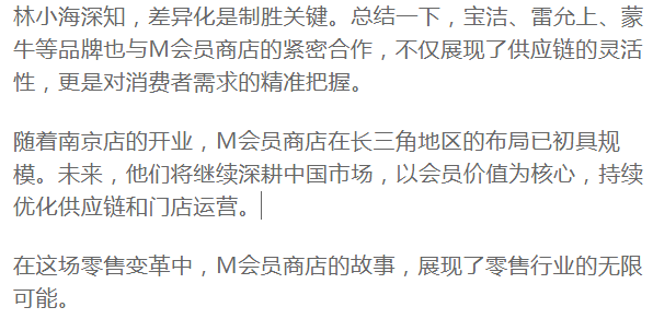 总结一下,M会员商店诞生也有几个得天独厚的优势: