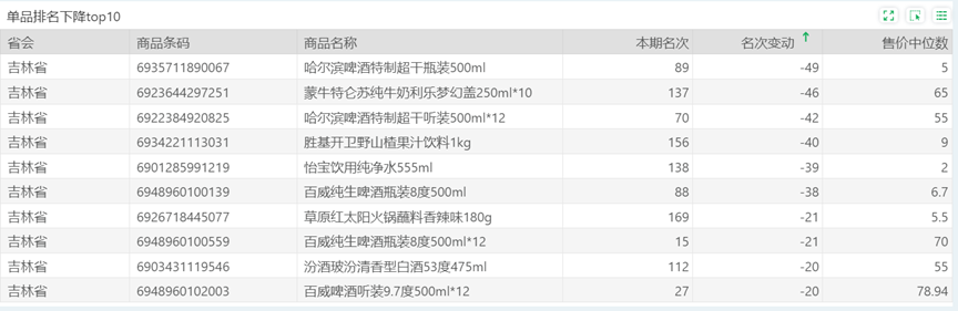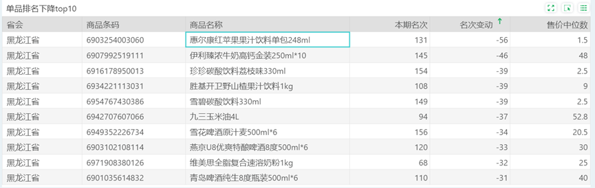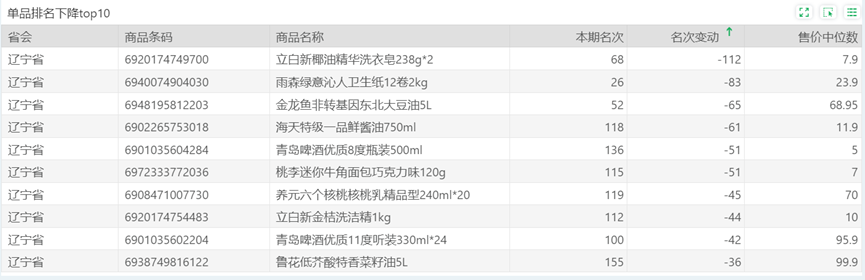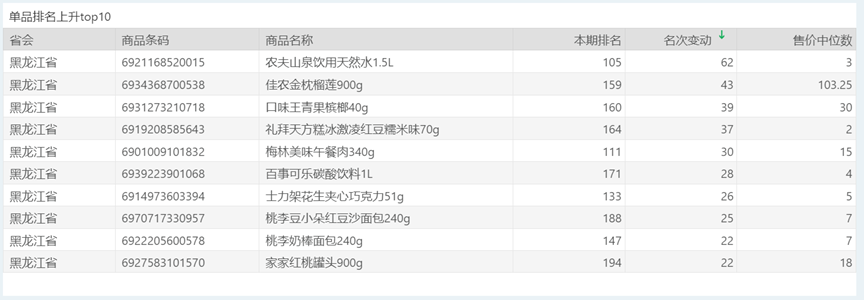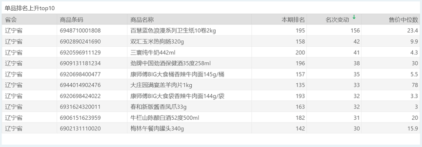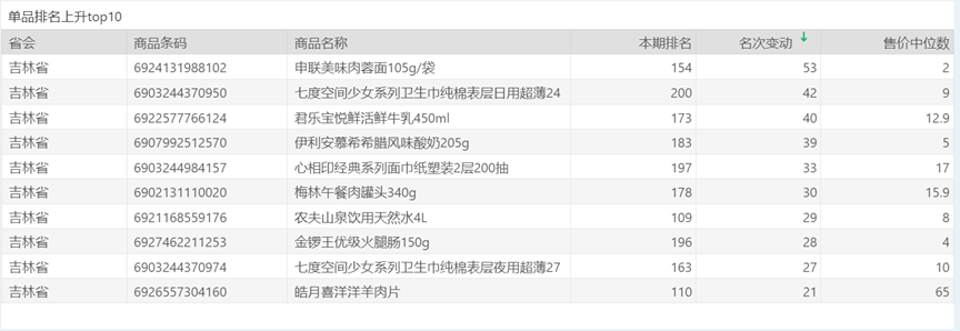 | 排名 | 名次变动 | 商品条码 | 商品名称 |