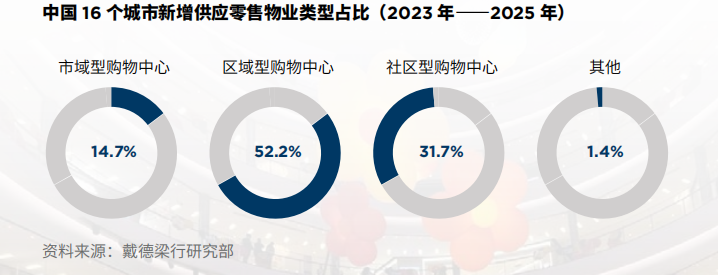 社区商业不仅是社区商业功能的载体,更是社区文化的载体。社区商业与周边社区管理委员会合作,在社区商业的多功能剧场、中庭、广场等空间举办艺术策展、文艺演出、跳蚤市场、公益义卖和亲子交流等社区活动,吸引周边居民参与社区活动的同时,也提高了顾客的粘性,为社区商业带来稳定的客流。随着中国社区商业重要性的日趋凸显,新增供应零售项目为社区商业的占比也进一步提升。根据戴德梁行的统计数据,未来三年,中国 16 个城市近32% 的新增供应零售项目为社区商业。