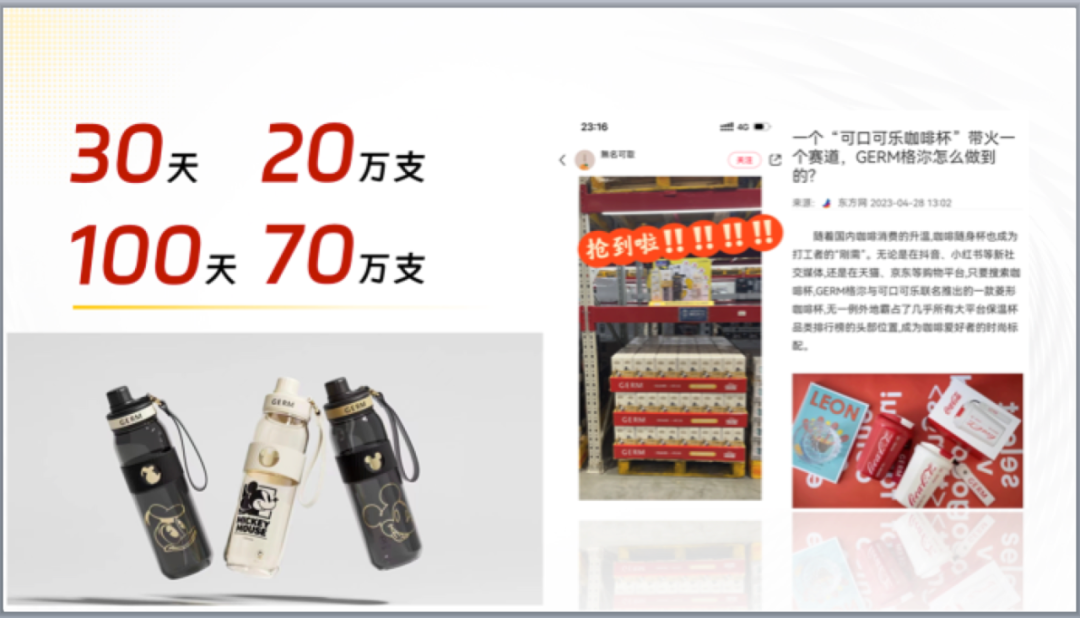 GERM格沵这个品牌,其实很多人不知道。提到“可口可乐咖啡杯”、“迪斯尼咖啡杯”可能很多人知道。格沵是时尚杯壶的领潮者,集结了全球多个知名IP,这种玩法就是中国制造商新的发展机遇。我们也希望中国商超能多多关注到我们的中国新商品,因为在所有超市里卖的水杯不会超过100块钱的客单价,所有的水杯都是传统的品牌或者日本的虎牌、膳魔师等,但是当一个新品牌出现的时候,有可能会颠覆一个品类。