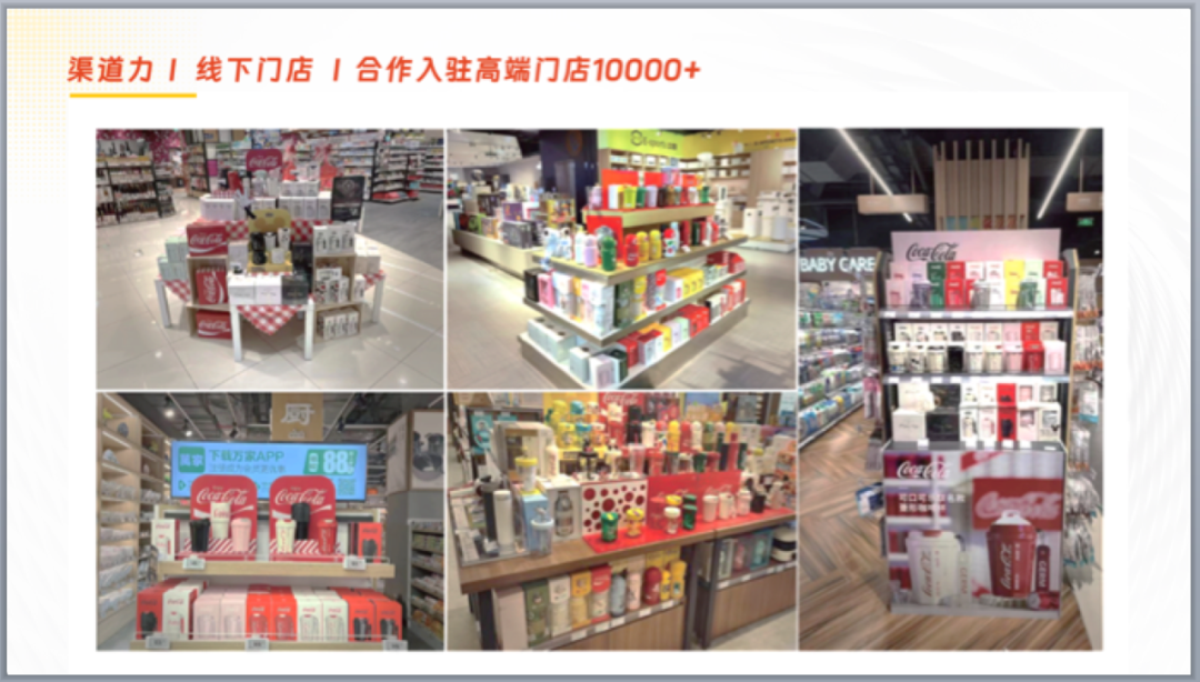 这个品牌,我给他们做了完整的战略规划。我们从2022年的500万只销售,到今年会提升到1200万只。我们会充分地研究消费者,研究每一个竞争同行,在一片红海之中我们要寻找到蓝海,这种蓝海其实每一个细分品类都存在。我们看到山姆的出样和陈列非常的简单,但极致高效。同时配合着极强的线上运营能力,小红书的种草已经“种疯”了,代购军团已经把这款杯子列为第一个抢购商品。我们看看我们的产品力,我们重新定义了什么是时尚水壶。我们的迪斯尼系列、咖啡杯系列以及潮玩系列,针对不同的季节、不同的年龄、不同的场景,进行了新品的开发。多色彩的运用,也让每一个杯壶成为服饰的搭配者。所以我们的消费者每一个人都至少拥有我们三个以上的杯子,去搭配他不同的场景进行使用。一个新商品最重要的是有没有线上打包的能力,我们在线上所有品类全部第一,所以我们才具备了往线下渗透的能力,这样才会让我们的商超卖起来更省力,同时会让商超积累更多的人气,去线下寻找网红商品。我请商场所有的老板和同仁们一定要去关注那些在线上已经打爆的品类,无论是抖音、京东、天猫还是拼多多,一定要去寻找线上已经打爆的商品,第一时间把它引入到线下,我们的成功几率才能够更高。我们的线下渠道也通过多种方式进行渗透,目前还仅仅局限于一些大渠道,像山姆、华润万家、大润发、盒马这些渠道。但我觉得这些大渠道跑通之后,我们会覆盖更多的中国线下商超渠道,用更多的新品去帮助我们的商超完成品类迭代,完成过去在商超里最难解决的杂品区和生活品区客流量不足、销售额不足、整体回购率不足的问题。其实,在商超里坪效最低的区域,大家可以大胆地进行整体品类的革新和新品的引入,去解决我们最头疼的问题,我觉得这可能是商超接下来要做的最重要的事情。强的地方,像生鲜,我觉得没有问题,但弱的地方我们一定要改变。