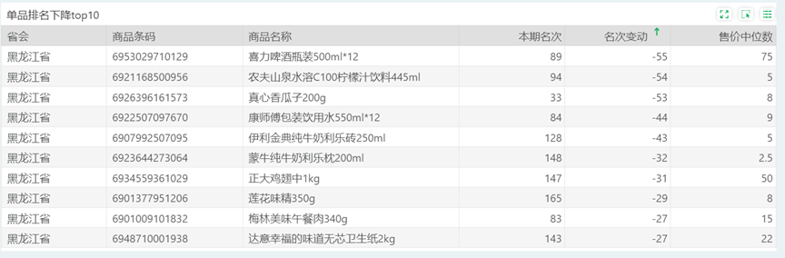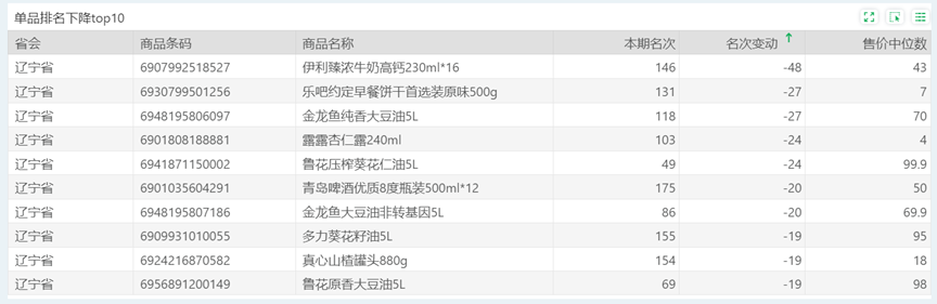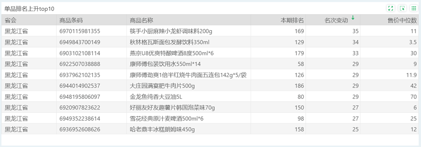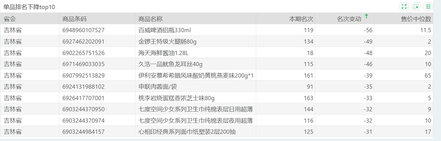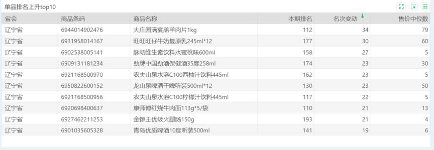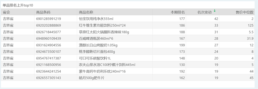| 排名 | 名次变动 | 商品条码 | 商品名称 |