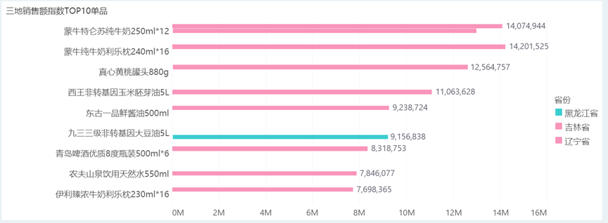 三地销售指数TOP10单品: