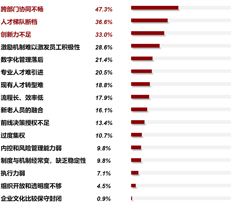 这几年零售企业为了降本增效,都在进行精简架构和层级,优化授权和流程的工作,从调研的反馈看,似乎大部分企业在组织管理的静态要素上做的尚可,但调研同时发现,组织内部的协同问题愈发突出,说明在组织的动态运行机制和文化等软实力方面还有较大提升空间。